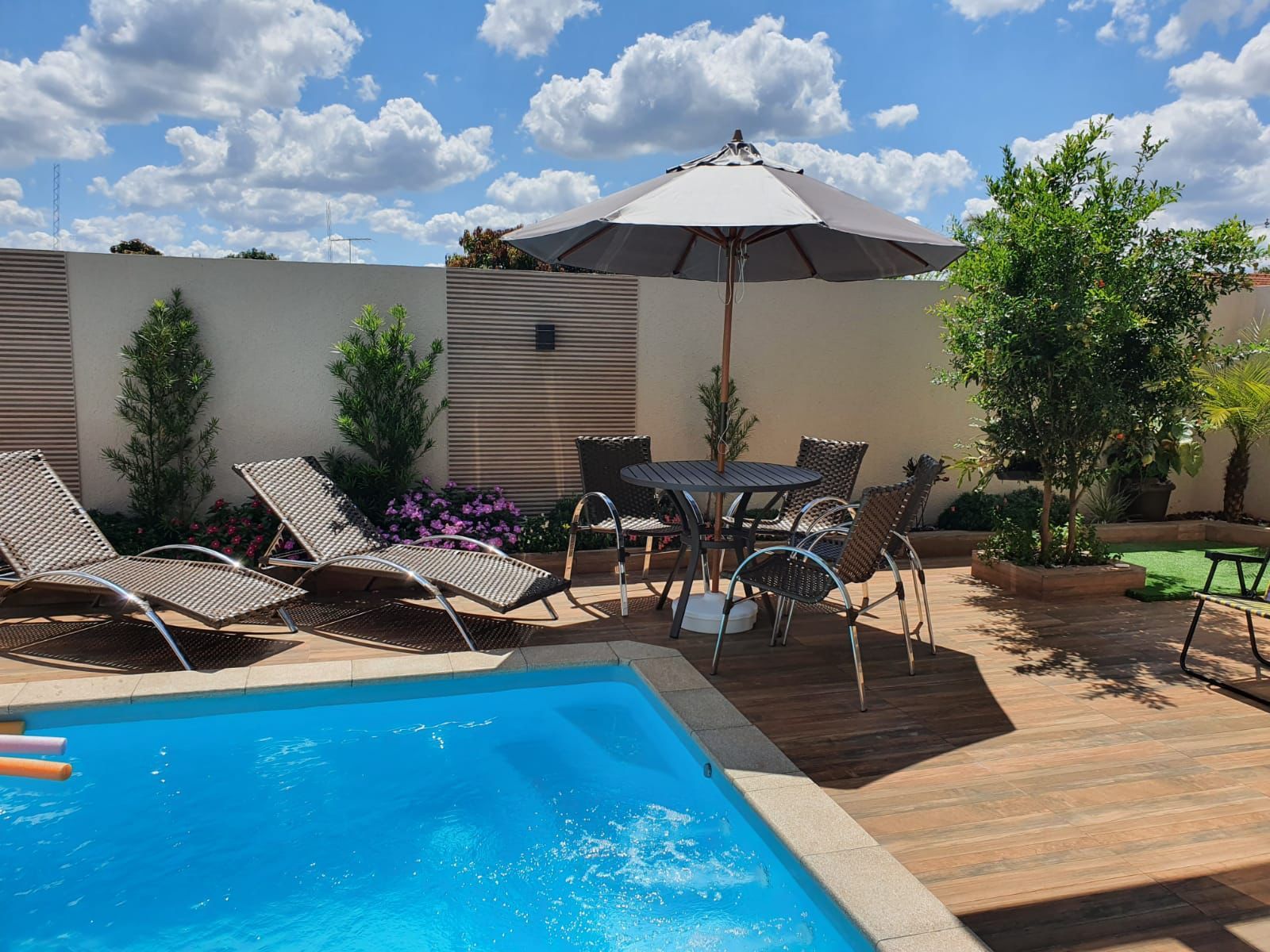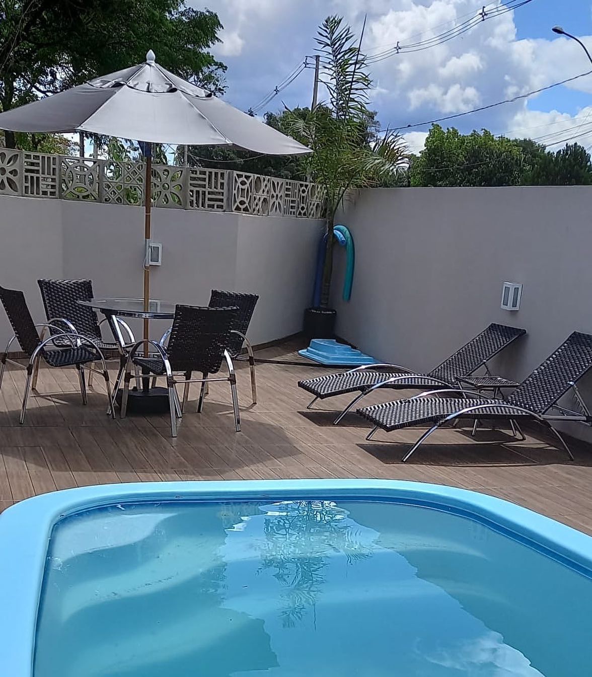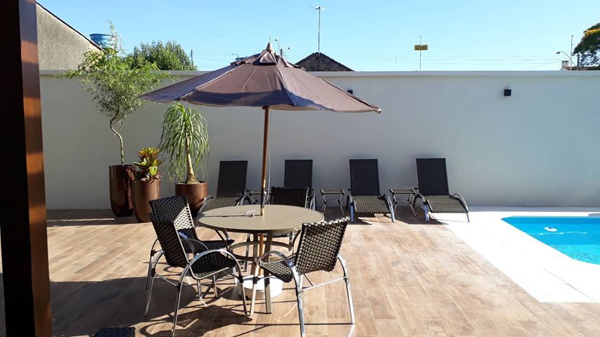 Incluso: 4 cadeiras, 1 mesa europa 100% aluminio circ 100, 1 ombrelone madeira tecido bagum , 1 base em plástico