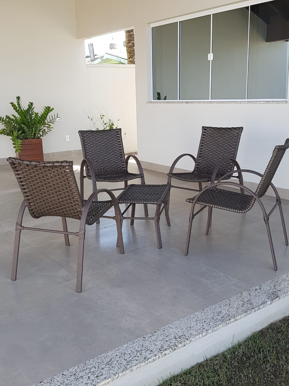 Estrutura em alumínio com trama em fibra sintética comum