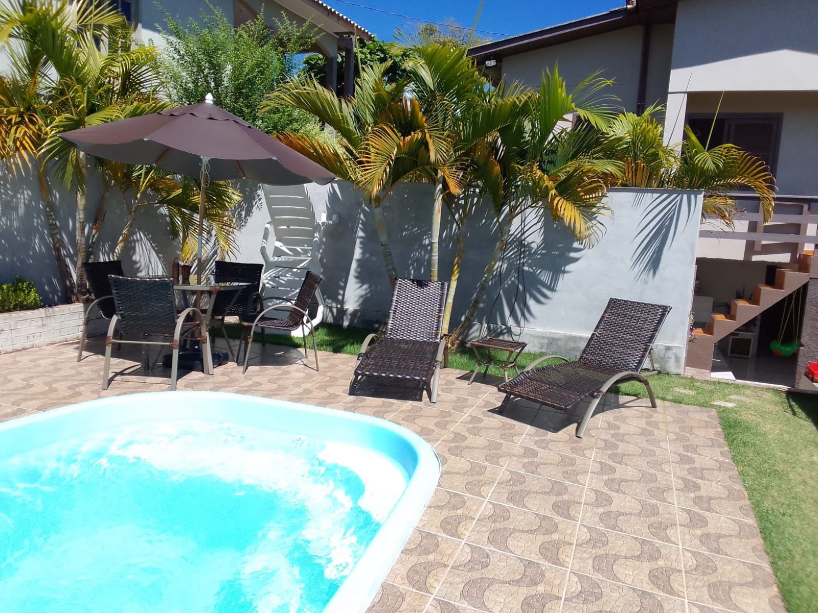 Incluso: 4 espreg. tropical + 3 mesas espreg. tropical + 04 cadeiras atlanta + 01 mesa europa 120 + 01 ombrelone madeira 240 + 1 base em plástico