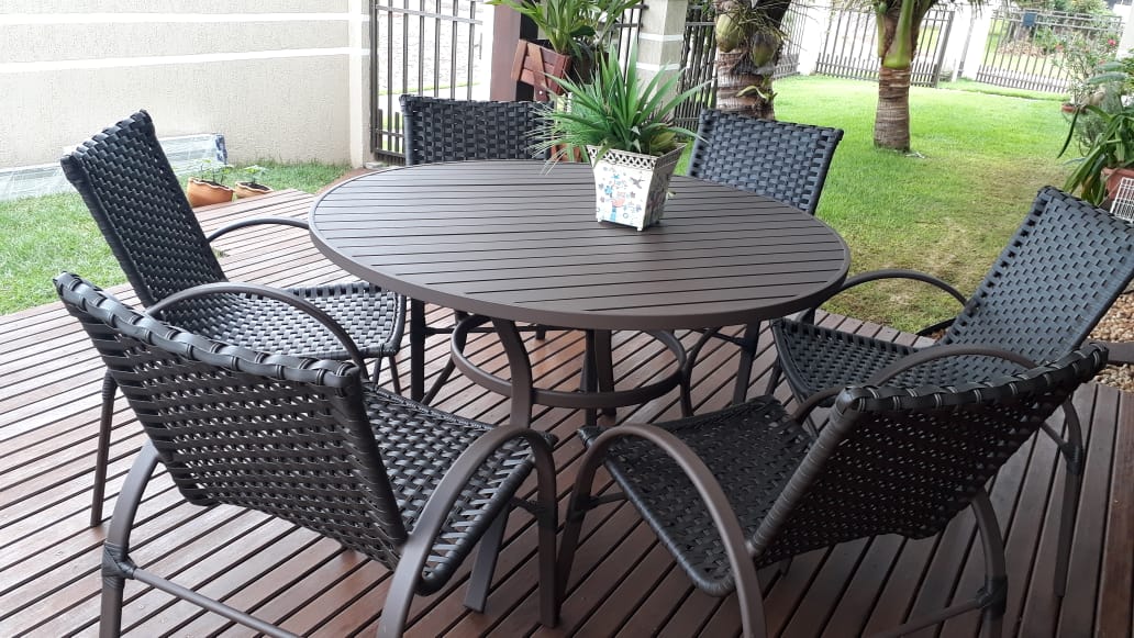 Incluso: 6 cadeiras, 1 mesa europa 100% aluminio circ 120