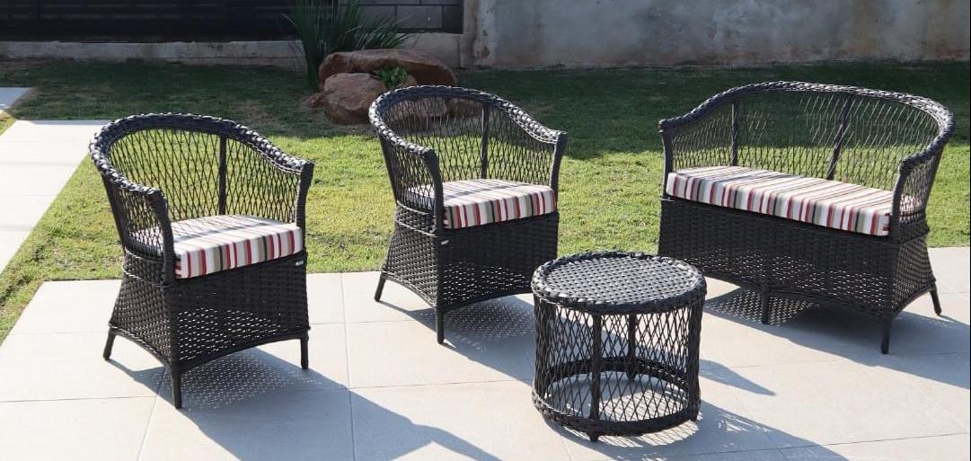 A linha Bela Itália é composta por cadeira, mesa, poltrona, namoradeira, mesa de centro
