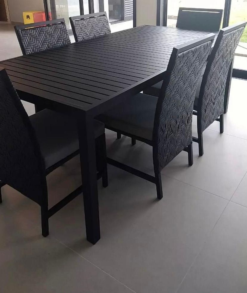 Incluso: 6 cadeiras s/ braços + 2 cad. c/braços + 1 mesa tupi aprox. 180x70 + 1 vidro aprox. 200x90