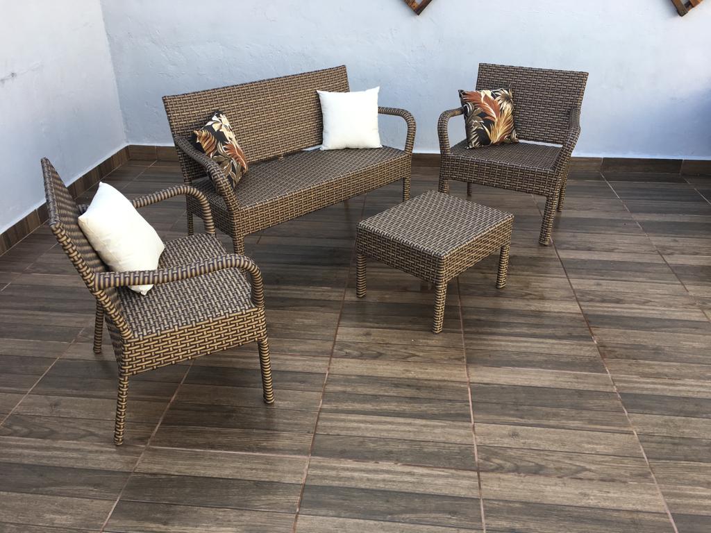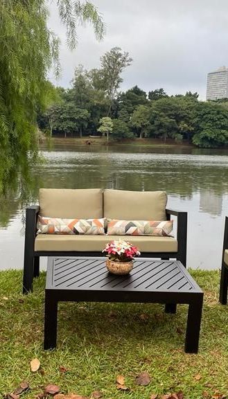 Estrutura em alumínio com fibra sintética trama fechada, almofadas decorativas vendidas avulsas