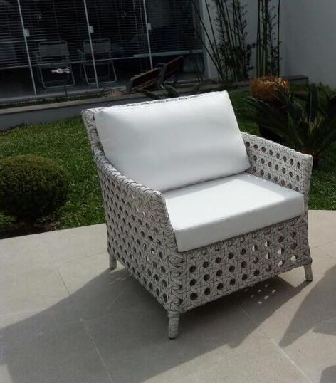 Estrutura em alumínio com fibra sintética trama enrolada incluso almofada assento e encosto