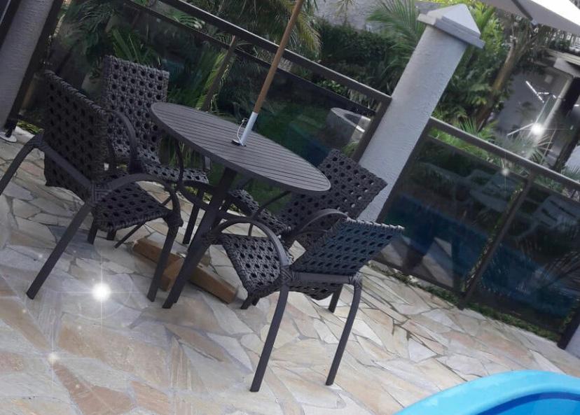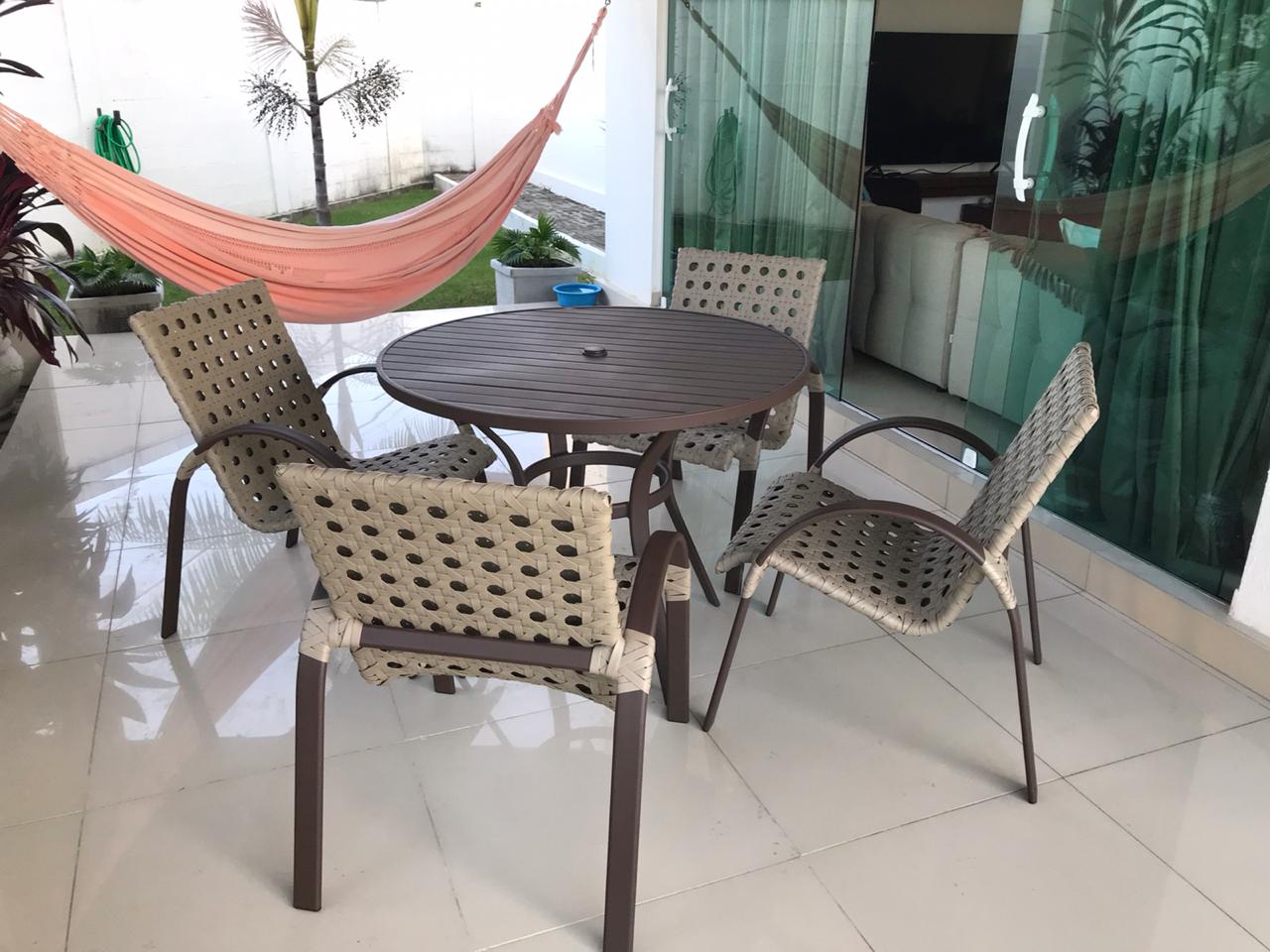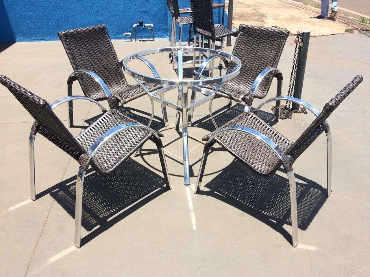 Incluso: 4 cadeiras + 1 mesa europa circ. 100 mt 100% alumínio tampo ripado