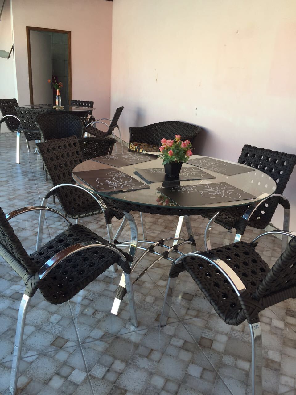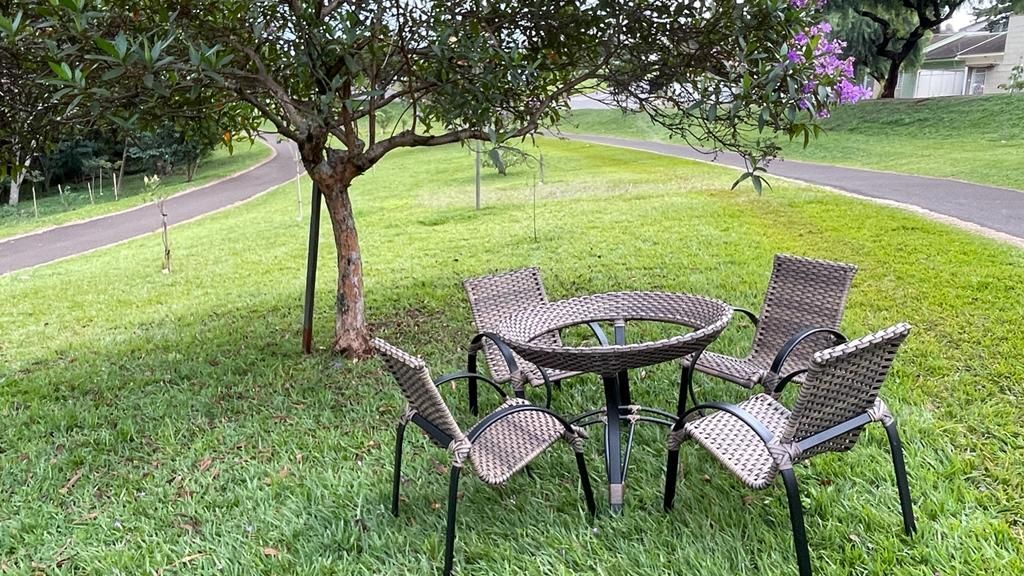 Incluso: 4 cadeiras trama colmeia + 1 mesa torres circ. 100 mt + 1 vidro 120