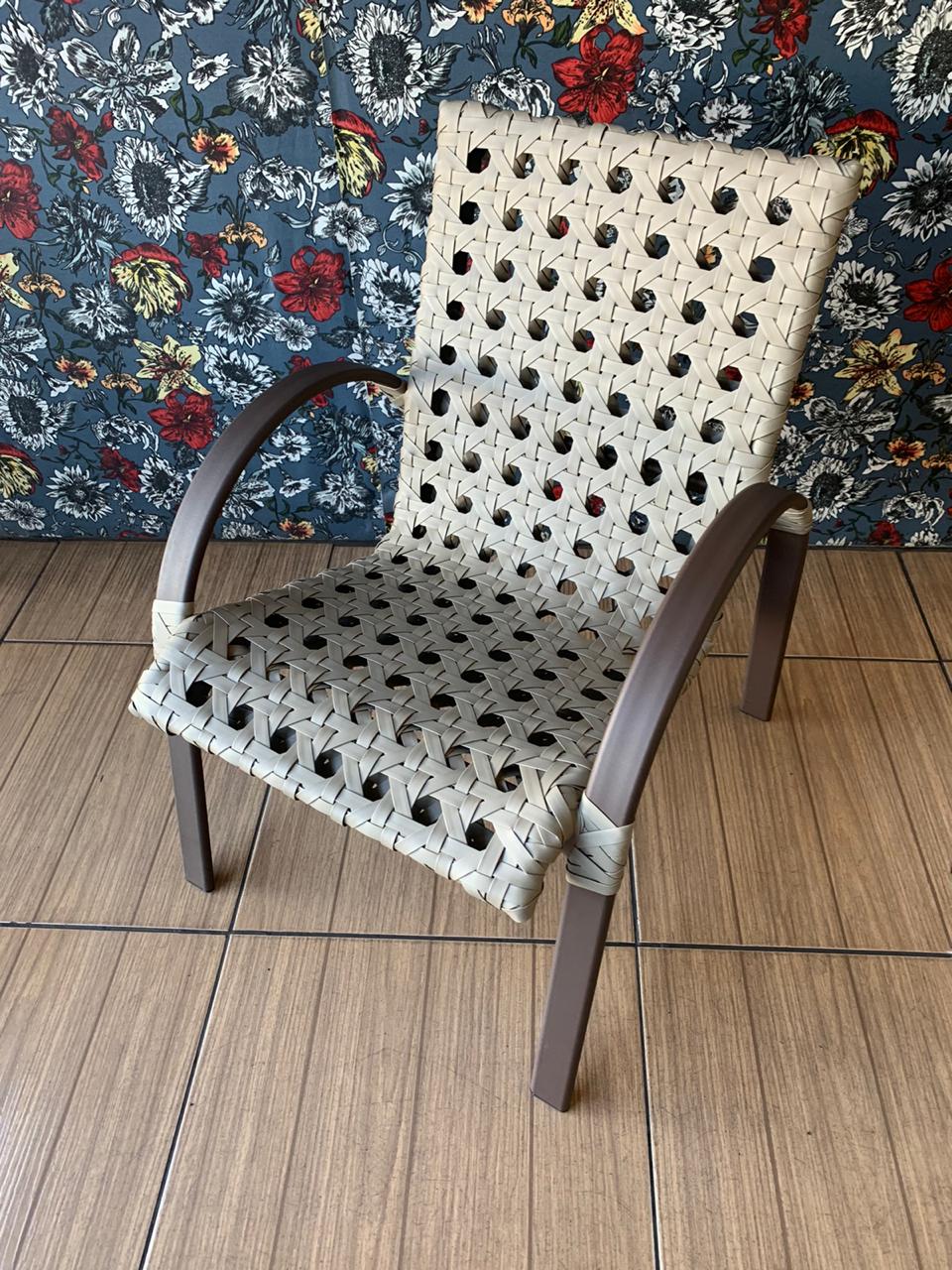 Estrutura em alumínio com tecimento em fibra sintética trama colmeia, mesa 100% alumínio